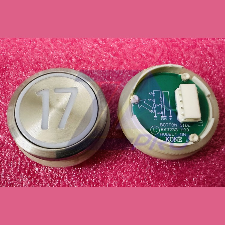 Кнопка приказа "17" круглая, серебристая поверхность, AVDBUT, красная подсветка, KM863050G005H017 Kone