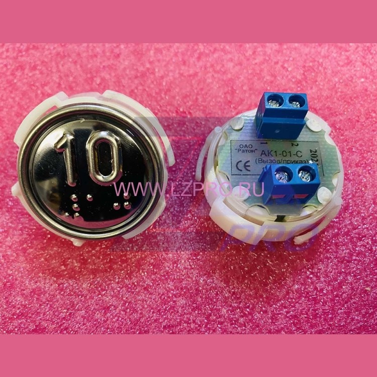 Кнопка (арматура коммутационная) с шрифтом Брайля, синяя подсветка 10 АК1-01-С МЛЗ