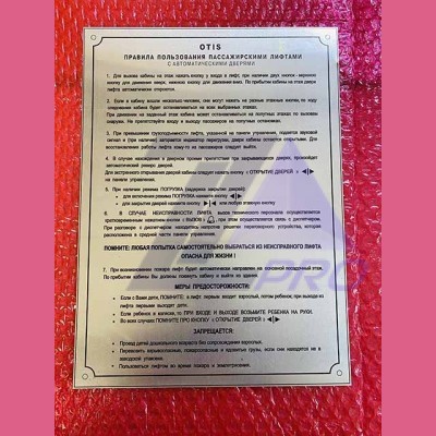 Правила пользования пассажирскими лифтами (материал алюминий, самоклеющаяся о...